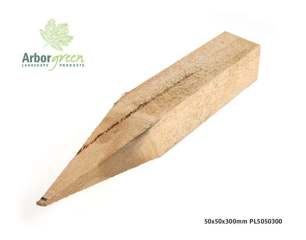 Short 50mm square x 300mm hardwood stakes typically used for survey work.