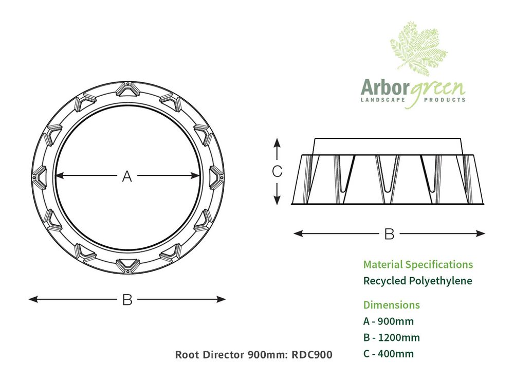 Trees planted in urban settings often require root systems to be directed below the level of hard pavements, road curbs & footpaths. This helps to prevent costly damage to infrastructure due to root heave. Once a road pavement surface or road curb is broken, water penetrates and encourages further shallow root growth; the extent of pavement damage can escalate rapidly. Broken pavement & footpaths also present a trip hazard for pedestrians. The RDC900 helps direct roots down and away from the surface as the tree grows, reducing maintenance and the need to remove problem trees in the future. Benefits include: